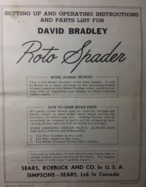 Vintage Sears Roto Spader Parts Accessories Model 785 Id Serial Tag Plate Ebay